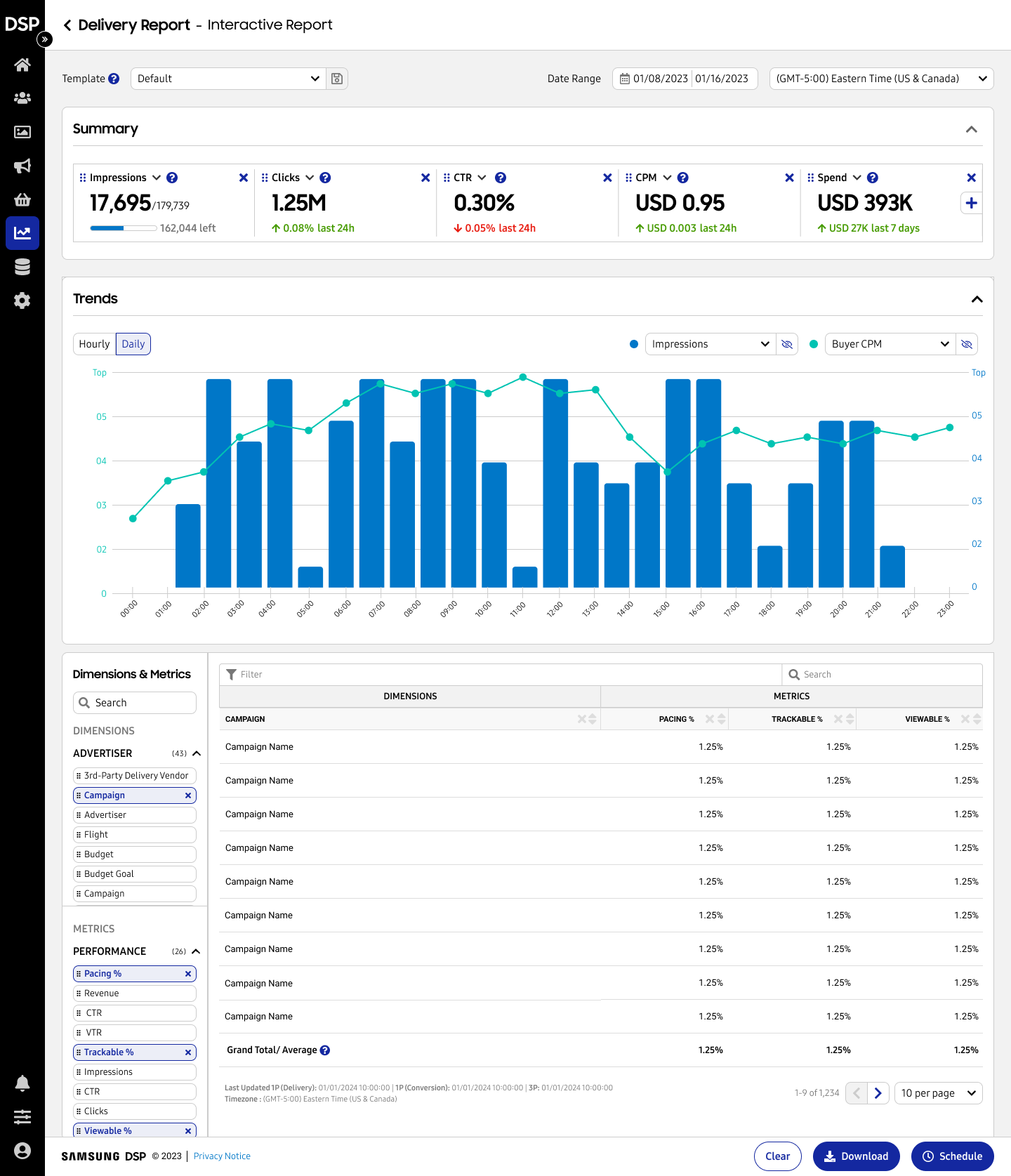 The Interactive Delivery Report is Samsung’s DSP’s key ‘Core’ report, initially powerful but with notable deficiencies.