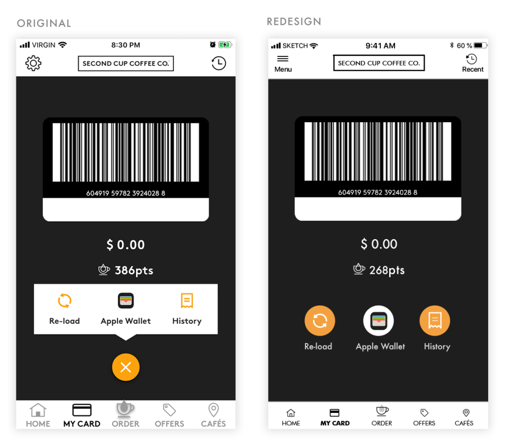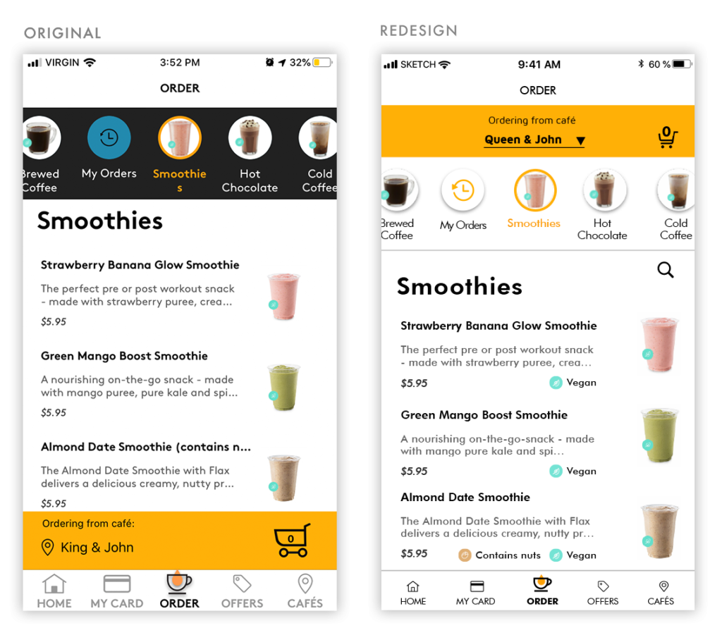 ‘Pick-Up Order’ bar was moved to the top and integrated into the flow of the menu better, which can also now be changed whenever the user wants.
