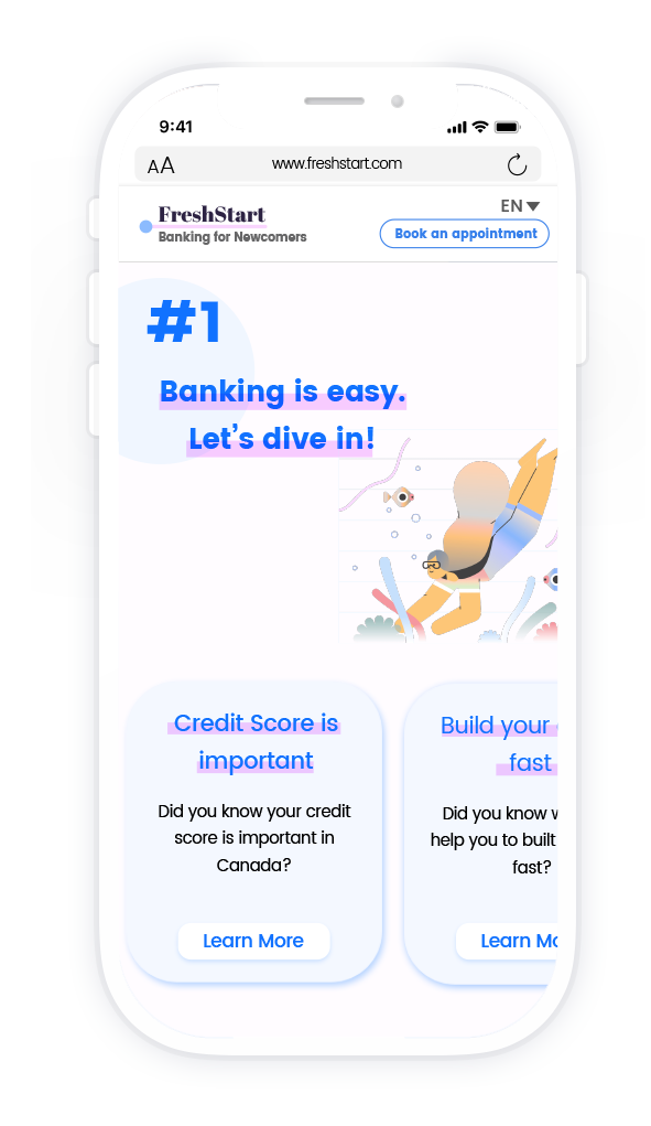 Set users up with an in-branch financial planner to help them navigate banking in Canada and set them up with a financial plan.
