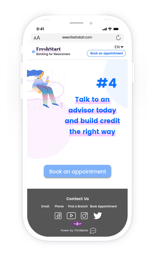 The fourth and last step is to encourage them to talk to an advisor to start building their future today with ThinkBank.