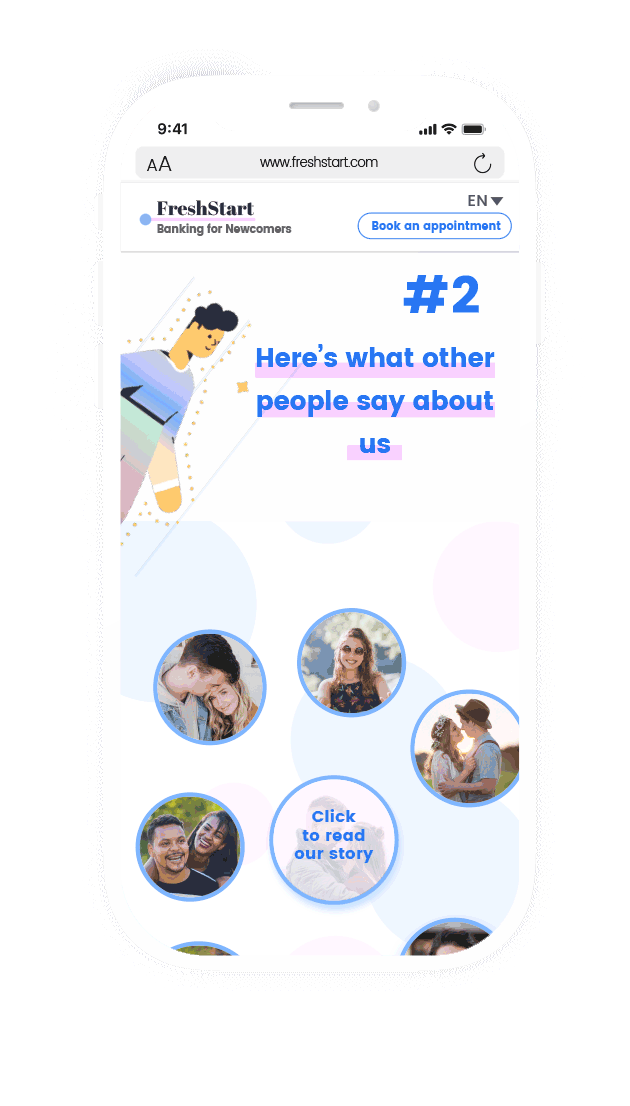 The second step is to create trust by showing them success stories from people that share a similar background. Seeing others who have similar goals and dreams when coming to this country also creates a feeling of community, not just a transactional relationship.